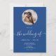 Simple elegant blue white photo script wedding invitation with this classic and elegant calligraphy the wedding of Script in blue and white Add you couple's photo in a circle mask.
