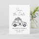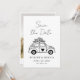 This simple, elegant, and boho save-the-date wedding photo invitation card is the perfect choice to tell your guests to reserve the date for your special day! The design features a cute hand-drawn wedding car decorated with flowers and a heart, with the ´´Save the Date´´ in handwritten script above it. The text under the photo is in elegant lettering. The reverse features your personalized photo, framed in elegant white with a custom text below. Make it yours by pressing the "personalize button", changing the picture, and replacing the text with your information. Your guests will love it!
