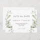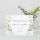 Elevate your wedding with the Simple Elegant Botanical Wedding Save the Date design, a timeless fusion of a verdant watercolor floral garden and refined sophistication. This modern classic design features delicate botanical elements of intertwined lush eucalyptus and graceful white florals, evoking the romance of nature in every season—spring, summer, fall, or winter.