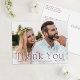 Elegant wedding thank you postcards featuring your full-bleed horizontal wedding photo with "Thank You" in burgundy lettering. Personalise these modern photo thank you postcards with your name for a stylish and thoughtful touch. The back of the photo wedding thank you postcard includes space for your return address and a personal message, making it easy to express your gratitude to guests. Perfect for showcasing your favourite wedding photo while sending a heartfelt thank you.