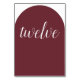 Elegant burgundy rounded Table Number Cards with chic lettering in any colour are beautiful for your event tables. **NOTE: Create and add each table number card that you need to your shopping cart individually. Change the background and text to any colour to match your theme.