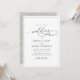 This elegant Wedding Invitation features a sweeping script calligraphy text paired with a classy serif & modern sans font in black, and frosted sage green back with a floral line art pattern & a customizable monogram. Matching items available.