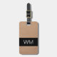 Simple elegant luggage tag with PRINTED cardboard, black stripe and bold monogram.