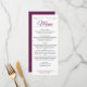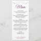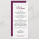 This beautiful cassis purple or magenta, grey and white menu will add some style to your wedding reception. Features a simple design of cassis and grey lettering on a white background with a decorative silver faux foil floral filigree.