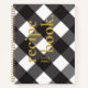Simple Elegant Chic Black Gingham Gold Recipe Notebook