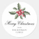 Simple elegant Christmas sticker featuring watercolor artwork of holly and berries and classic font. Perfect for adding to your gifts.