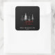 This elegant square sticker features a minimalist design of white pine trees on a black background. The word "Merry Christmas" is written in a festive red script, and the family name is added below. This simple yet stylish sticker is perfect for adding a touch of holiday cheer to your gifts and packages