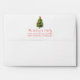 The design features a watercolor Christmas pine tree, and a Christmas envelope with the return address.