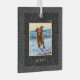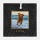 Simple Elegant Custom Pet Name Photo black floral metal Christmas ornament with your pet’s name in an elegant gold serif font.