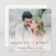 This simply chic custom photo newlywed holiday card template features an elegant, minimalist, modern design. The default card shape is standard sharp corners, but rounded corners also work wonderfully with this design and lend a soft look, so try both shapes in editing mode and see which strikes your fancy! The front features your favourite photo, names and year and a 'MARRIED and MERRY' message conveyed with a striking blend of two distinct fonts, with 'and' in a light, flowing script between the rest of the other two words, which are in upper case with a bold, crisp formal look.
