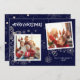 Simple Elegant Dark Blue 2 Photo Frames Family Holiday Card
