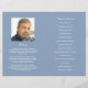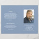 Modern funeral program / funeral pamphlet featuring a simple yet elegant design.  The front includes a photo of the deceased along with their name, birth and death dates.  The inside has a second picture along with two headers and two templates for the obituary and order of service.  The colour palette is dusty blue and may be changed in the design editing tool.  This program can be used for a funeral, memorial service or celebration of life.  PLEASE NOTE: The default paper option selected is "matte" and it's the best option if you are ordering this as a folded program.