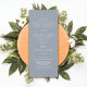 This simple and elegant wedding invitation is perfect for the trendy and stylish couple. It features modern white typography on top of a simple dusty blue background. It's minimal, sleek, and stylish; the perfect design to impress your guests.