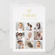 This simple and minimalist, gold foil holiday card features an elegant nine photo collage on the front, and an additional photo on the back, for a total of ten of your favourite family photos. Classic gold calligraphy along with modern text for your family name add a stylish touch. The back also has room for your personal Christmas or Hanukkah message to family and friends.