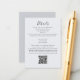 A simple minimalist wedding details enclosure card with white text and a dusty blue colour scheme. This template features a QR code, wedding website, and information and response reply vial website. The back features a grey ampersand and bride and groom's monogram initials.