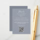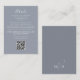 A simple minimalist wedding details enclosure card with white text and a dusty blue colour scheme. This template features a QR code, wedding website, and information and response reply vial website. The back features a grey ampersand and bride and groom's monogram initials.