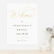 This simple and elegant framable welcome sign is the perfect addition to your bridal shower or any event! Featuring elegant gold foil calligraphy script lettering that beautifully stands out against the crisp white background, this sign warmly welcomes your guests and sets the tone for a memorable occasion. Sign includes two customisable text fields beneath the "welcome" message, where you can easily add your event name and date. This personal touch ensures your guests feel special and adds an extra layer of sophistication to your décor.