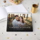 This simple, beautiful wedding guest book features a full bleed photo template. A dark gradient overlay towards the bottom allows the text to stand out against your photo. It can be moved up or down, if needed. The back and spine are shown with a black background, but the colour can be customised, if desired. Easy to personalise for your special day!