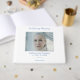 Honor a beautiful life with this modern minimalist funeral photo guest book featuring a cherished photo and the timeless phrase “In Loving Memory” in lovely dusty blue color. Simple and elegant funeral guest book featuring clean script typography, a photo template, a subtle scroll line accent and comforting saying on the back. Designed for memorial services, sympathy keepsakes, remembrance cards, and celebration of life events. Easily customizable for your memorial event. Timeless minimalist memorial stationery. You can find other tastefully designed funeral stationary and signs in the Modern Minimalist In Loving Memory Collection in The Gathering Designs store.