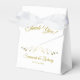 These thank you favor boxes are the perfect way to thank members of your wedding party for being a part of your special day. Fill with candy, wedding favors or gifts. Designed as a part of our Gold Foil Wedding Suite, they feature a simple yet elegant design of gold script text on a white background with a faux foil floral border. Fully customizable so you can enter the information you need.