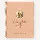 Modern Minimalist Gold Metallic Emblem Initial Name Girly Script Custom Text Template Pastel Peach Orange Background Monogram Notebook