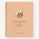 This sketchbook notebook in a beautiful peach colour is perfect for artists and creatives who want to stay organised while sketching and doodling. The simple and elegant design features a brushed metallic gold monogram emblem, with a custom name presented in a stylish script. The sketchbook has high-quality paper for drawing and sketching. This notebook is also great for taking notes or writing down ideas. The perfect gift for artists, designers, and anyone who loves to create.