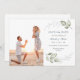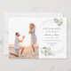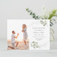 Save the date save wedding announcements featuring a simple design with watercolor greens that can be customised with a photo of the couple. Personalise with your information.
