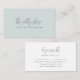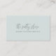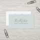 Elegant and simple business cards for any occupation feature two lines of text in soft classic grey, with your name or business name in stylish hand lettered calligraphy script lettering on a barely there pastel seafoam green background. Customise the back with your full contact details.