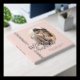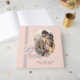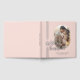A uniquely elegant wedding guest book with real silver foil and modern styling on a blush pink background. The design features an oval photo template for including your selected photo. Wedding Guest Book text is spelled out in modern script typography and is accented with simple line graphics. Personalise the text template with your names and wedding date. The spine of this guest book also has a text template to personalise as you like.