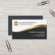 An exquisite design with a faux gold wave riding on a dark grey expanse. Over at the lower corner lies your prestigious name and job title alongside the contact details. Northwards to the upper left corner, are the faux gold graph logo. Beside it are the business name and the type of services that you may offer.
