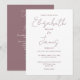 This minimalist, mauve, elegant script wedding invitation can be personalised with your information in chic typography with your wedding website details and your QR code on the reverse. Designed by Thisisnotme©