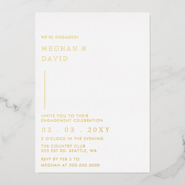 Simple Elegant Minimal Modern Foil Engagement Party Invitations