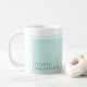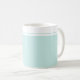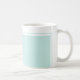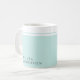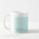 This coffee mug design conveys a sense of elegance and classic minimalist styling with its modern colour block design elements in light aqua robin egg blue. The text template for this design includes your name on the lower left corner. This mug is available in several different sizes. Shown here in the 11 oz. size.