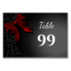 This elegant wedding table number design features a classic red bow, perfect for adding a minimalist yet sophisticated touch to your special day. Set against a black background, the red bow symbolises timeless style and love, making it an ideal match for modern, classic, or romantic wedding themes. The simplicity and elegance of this design will seamlessly blend with your wedding decor, providing a refined look for each table at your celebration.