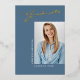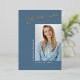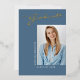 Stylish gold foil, 1 photo graduation announcement cards, featuring design elements of elegant handwritten style script. The word "Graduate" is in real foil (foil colour options are gold, silver and rose). The graduates photo highlights the front of the card. The design is complimented with a chic dusty blue background. The back of the card offers a personalised announcement text space for that special graduate. To see more items like this, visit my store here at "www.Zazzle.com/LakeViewCardCo". Thanks