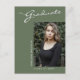 This modern elegant yet simple graduation announcement postcard, features design elements of modern text fused with elegant calligraphy script. The graduates single photo highlights the front of the card while the back of the card offers personalised text spaces for information about the graduation and future journey. White writing on stylish sage green or easily customise the background to a colour of your choice. To see more items like this, visit my store here at "www.Zazzle.com/LakeViewCardCo". Thanks