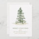 This simple, modern Christmas card features an elegant original snowy watercolor painted Christmas tree at the top. Enter your family name and first names. The back has a rustic white washed wood design.