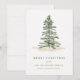 This simple, modern Christmas card features an elegant original snowy watercolor painted Christmas tree at the top. Enter your family name and first names. The back has a rustic white washed wood design.