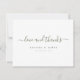 This simply chic wedding thank you card template features a crisp modern look. The default shape is standard sharp corners, but rounded corners also work well with this design, so check that look out and see which style grabs you! We've given this minimalist design a splash of panache with 'love and thanks' in a flowing modern font and highlighted in an elegant medium dark shade of green that manages to be both elegant and lively at the same time. We love the stylised, elongated flourish at both ends of the design. You can easily edit the text to suit your taste, and you can change the font and colour of the text as well. You might for example chose another format for your names, such as 'Mr. and Mrs......' or your first names and last name, etc. Or you might change the colour of the 'love and thanks' script or the text below that. We've chosen black and grey as the default colours for the names and date text on the front, and a grey tone for the text on the back. We've put some sample text on the back for you to replace with your own message as you see fit. But please don't feel restricted by this. If you prefer delete our sample text and then keep the back totally blank so that you can write a handwritten note on each card instead, you can do that. Or you might want to replace our text with your own message of gratitude and your own closing and then hand sign your names when you receive the cards. Or you might change the font of this text, or change the colour, or use both upper and lower case rather than the upper case look we've chosen for the sample text on the back. Just please be sure in any case to delete our sample/placeholder text on both sides of the card! The default background on the front is transparent so that the colour of the paper will simply serve as the base tone. On the back we've chosen a background hue that isn't quite white, it's a very light grey that's mostly white called White Smoke. You can change this by picking another colour in the editing tools, or perhaps you'd like to make it transparent as it is on the front. We hope you'll enjoy experimenting with various aspects of this card's appearance according to your taste and make it uniquely yours with the intuitive design tools and your inspiration. And please browse our wedding thank you collection for a selection of elegant modern wedding thank you cards!