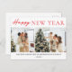 Simple Elegant Modern Happy New Year Two Photo Holiday Postcard