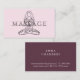 Modern massage therapist script lotus pose serene pink business card.