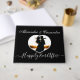 Elegant wedding guestbook featuring your names and wedding date. White with a black background. Personalise the spine of your wedding guest book with the bride & groom's name and wedding date. The back of the guest book features your favourite photo. . With a heart-shaped custom photo on the front cover.