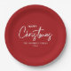 Simple Elegant Modern Red Happy Christmas Paper Plate