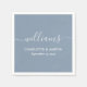 Personalised dusty blue wedding paper napkins with a modern script font. Easily personalise online with your wedding details. Matching items available to complement these minimalist, yet elegant dusty blue wedding paper napkins.
