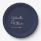 Simple Elegant Modern Script Navy Blue Paper Plate