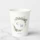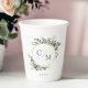 Simple elegant monogram eucalyptus paper cups