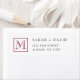 This classic, elegant return address label template features space for the first letter of your last name with a border, both in an elegant shade of burgundy. The name and address text is a dark grey tone that's mostly black by default. The background is white. This design is fully editable to suit your style. It's perfect for everyday use and also works well with envelopes for wedding thank you cards and other special occasions. You can use two first names, a single first and last name, or any other format. You can also change the background tone to another colour and you can also edit the font, colour and size of the text and also the colour of the border around the initial. We've used a '+' symbol between our sample names, but of course when you edit the design so show your own details, you can change that to another symbol or word if you prefer. Create your own custom look with the intuitive design tools, and please check our return address label collection and get ideas and inspirations from our large selection!