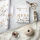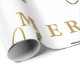This elegant and minimalist Christmas wrapping paper features a classic white background adorned with a repeating pattern of the phrase "Merry Christmas" in a stylish, handwritten font. The word is printed in a subtle gold ink, adding a touch of luxury and sophistication to the design.