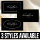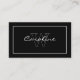 A business card in a simple and elegant design in white on black with a name and monogram in a rectangle on the front and contact information on the back.