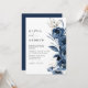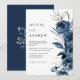 Simple Elegant Navy Blue Boho Floral Wedding Invitation